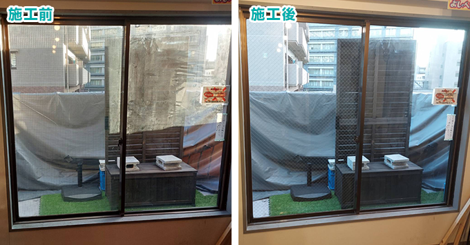 立ち合いでのお見積り後、引き違い窓のガラスを交換しました。